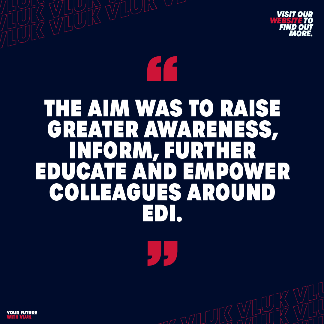 Equality, Diversity & Inclusion Posted on 10 October 2023 Yesterday one of our tutors, Mimi, hosted a CPD for all VLUK staff about Equality, Diversity & Inclusion. The aim of this CPD was to raise greater awareness, inform, further educate and empower colleagues around EDI whilst making key links to support teaching and learning amongst underrepresented groups within VLUK. The CPD was exceptionally well received by all who attended and there was much discussion about how to include this topic within all parts of our learners education. Huge thanks to Mimi for taking the time to produce such an insightful CPD.