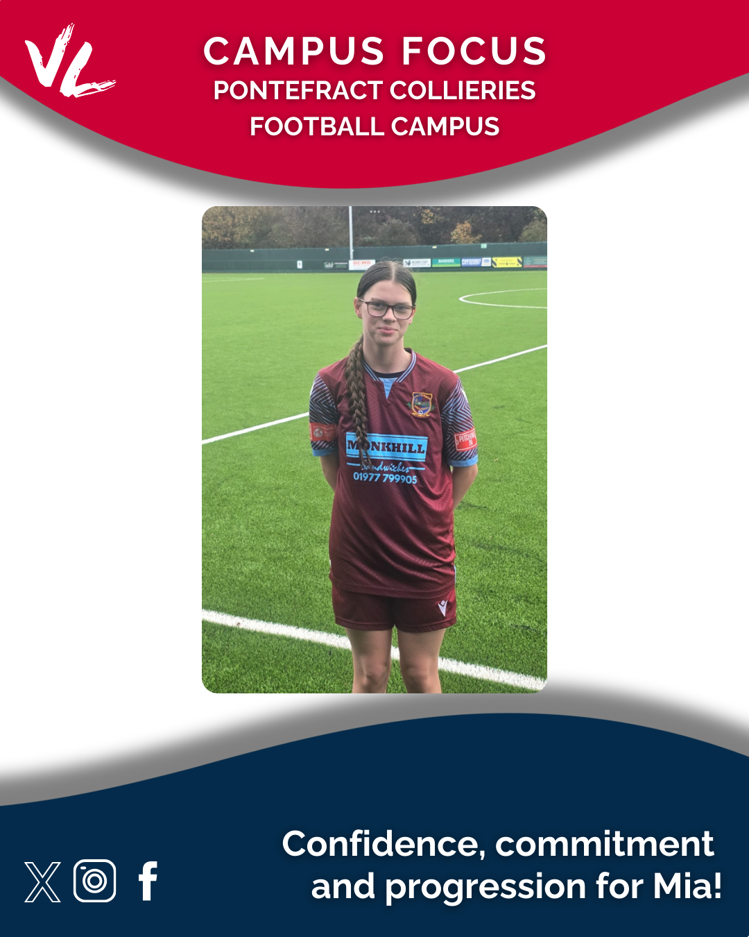Hard Work from Mia Posted on 13 January 2026 Mia joined our Pontefract Collieries campus as the only female learner, a challenge she embraced with confidence and determination - a clear reflection of her strong mindset and desire to develop. Within just a few weeks of starting on the programme, her exceptional application, maturity and the consistently high quality of her work stood out and she has gone from strength to strength. She has achieved Distinction-level work in every assignment so far, maintains perfect attendance in her GCSE lessons and regularly receives outstanding feedback for her focus, work ethic and attitude to learning. Her transition into the programme has been seamless and she has quickly become a learner to be proud of. Alongside her academic success, Mia has also made a significant impact on the pitch. She has competed this season as part of our Sheffield Flexi League squad, who currently sit top of the table, delivering excellent performances from full-back. Her progress has been recognised with a call-up to the Ladies First Team, clearly demonstrating the progression opportunities available for female learners within the programme. Beyond her studies and football, Mia has shown impressive initiative by pursuing her passion for photography. Through volunteering her time with our Scholarship and Junior teams, she has begun building a professional portfolio by capturing matchday photography. This experience is already laying the foundations for future income opportunities alongside her education and sporting commitments. Mia’s journey is a fantastic example of what can be achieved through resilience, hard work and ambition. The Pontefract tutor said "We are incredibly proud to highlight the outstanding progress of Mia, a learner whose resilience, commitment and ambition have made a lasting impression this year. Well done, Mia - keep up the amazing work".