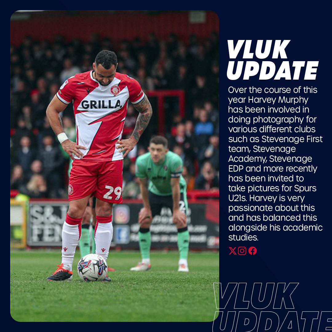 Photography Posted on 19 June 2024 Our year 13 Stevenage learner has a passion for photography with a future ambition of having his own photography company. Over the course of this year, Harvey Murphy, has been involved in doing photography for various clubs such as Stevenage First team, Stevenage Academy, Stevenage EDP and more recently has been invited to take pictures for Spurs U21s. Harvey is very passionate about his photography and has balanced this alongside his academic studies.