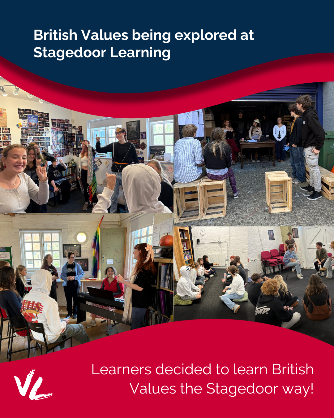 Stagedoor British Values Posted on 26 September 2025 At Stagedoor Learning this week's tutorial was on British Values. Our Year 13 learners took on the role of leaders, designing and delivering a series of creative activities for the Year 12s. This peer-led approach not only gave the Year 13s a chance to revise what they had learned last year, but also provided the Year 12s with an engaging and memorable introduction to the five key values. The activities were as imaginative as they were informative. Year 12s stepped into a courtroom setup to explore the rule of law, learned an original song about mutual respect, and experienced forum theatre to understand the importance of tolerance. Democracy came alive through a discussion on the suffragettes an area the Year 13s know well after performing Angry Birds last summer and a lively mock debate highlighting why individual liberty should be respected. Each group also reflected on how these freedoms compare with countries where such values are not upheld. The session was a success on multiple levels. Year 12s not only deepened their knowledge of British Values, but also developed teamwork skills and were inspired by the confident leadership of their Year 13 peers. Meanwhile, the Year 13s strengthened their understanding of the values, while honing organisation, workshop-leading, and communication skills. This collaborative tutorial demonstrated the power of peer learning, with both year groups gaining knowledge, confidence, and valuable experience along the way.